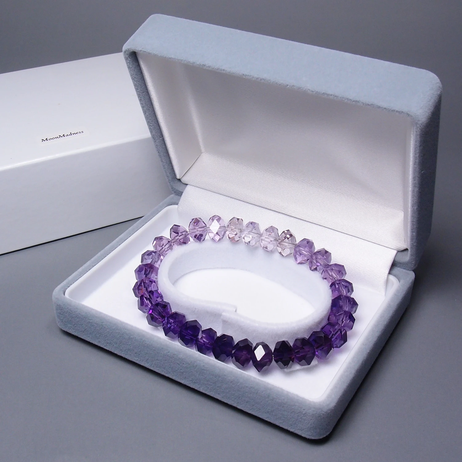 このブレスレットは、高品質の美しい紫水晶(アメシスト)を使って、山梨の職人が製作しました。
