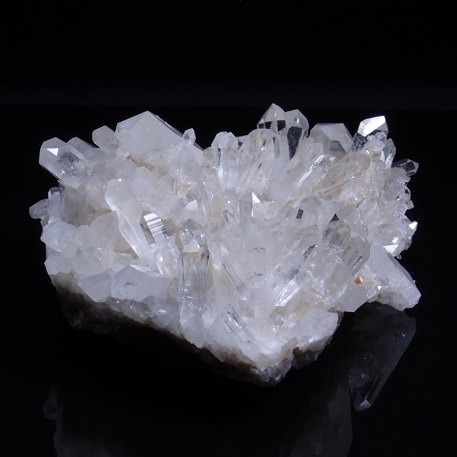 良質の原石は欠損も少なく、磨いたかのような艶やかで明るい透明結晶が林立します。