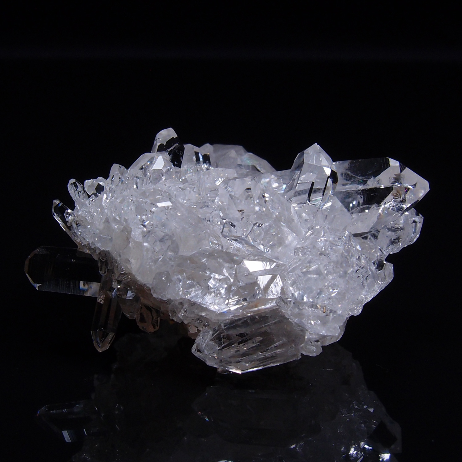 良質の原石は欠損も少なく、磨いたかのような艶やかで明るい透明結晶が林立します。