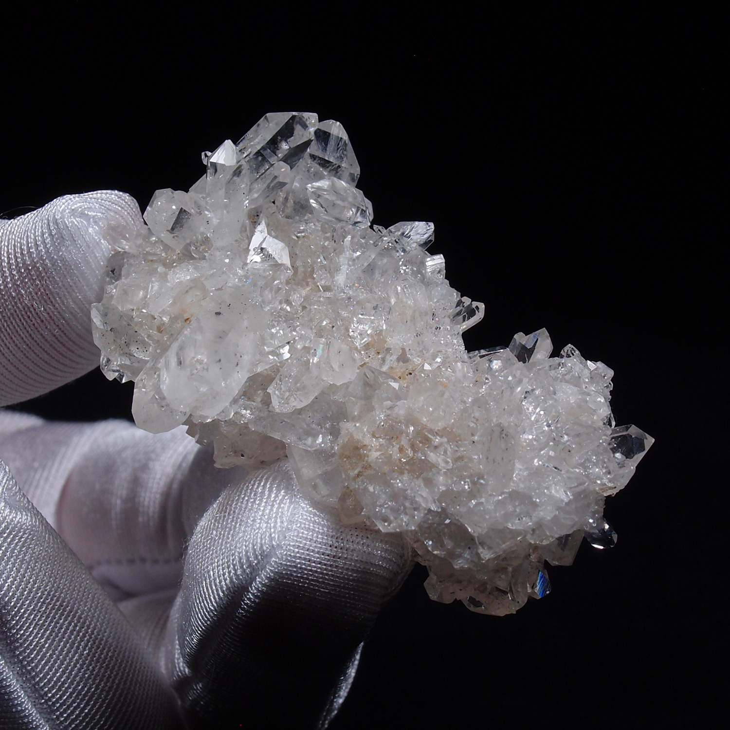 良質の原石は欠損も少なく、磨いたかのような艶やかで明るい透明結晶が林立します。