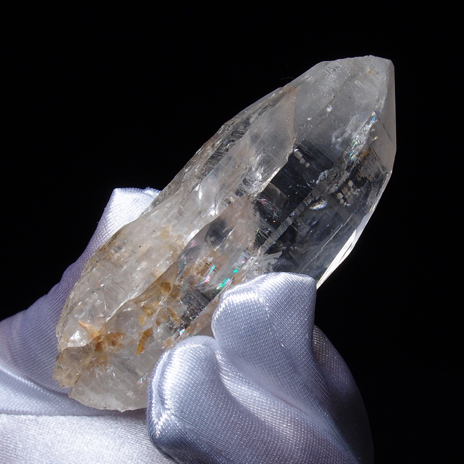 水晶の結晶形は、先端が両方にある双尖六角柱(ダブルターミネーテッド)や、長柱状の結晶が多いようです。