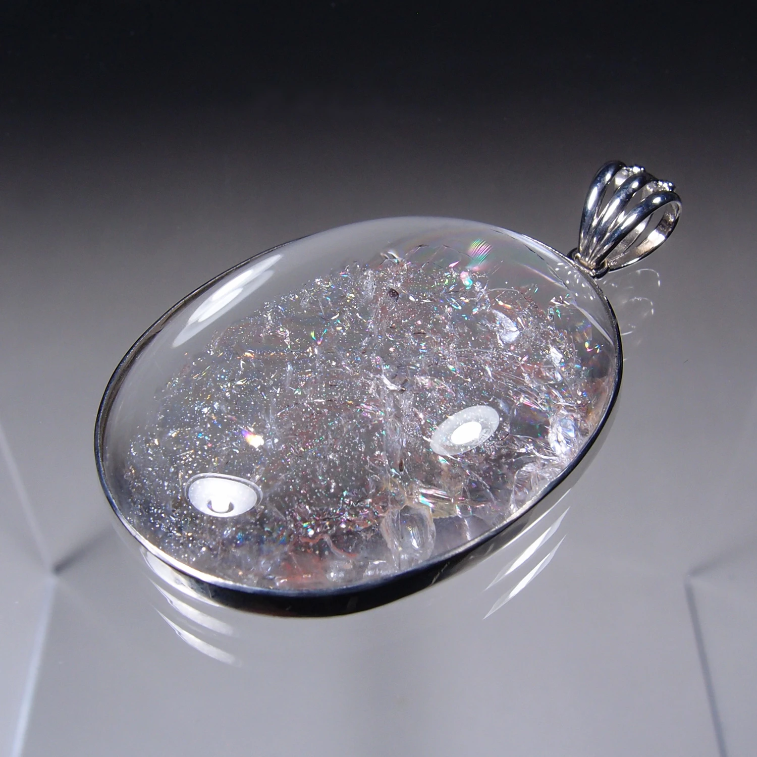 レインボー(虹)は水晶の内部のクラックなどに光が反射して七色に輝いて見える現象です。同じようなクラックがあっても虹が出ない石もありますから、美しい虹が見える水晶は、特別なパワーを感じさせます。