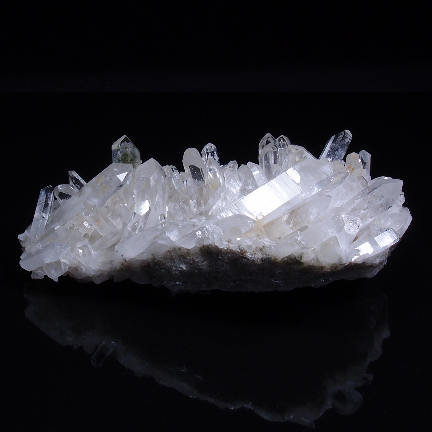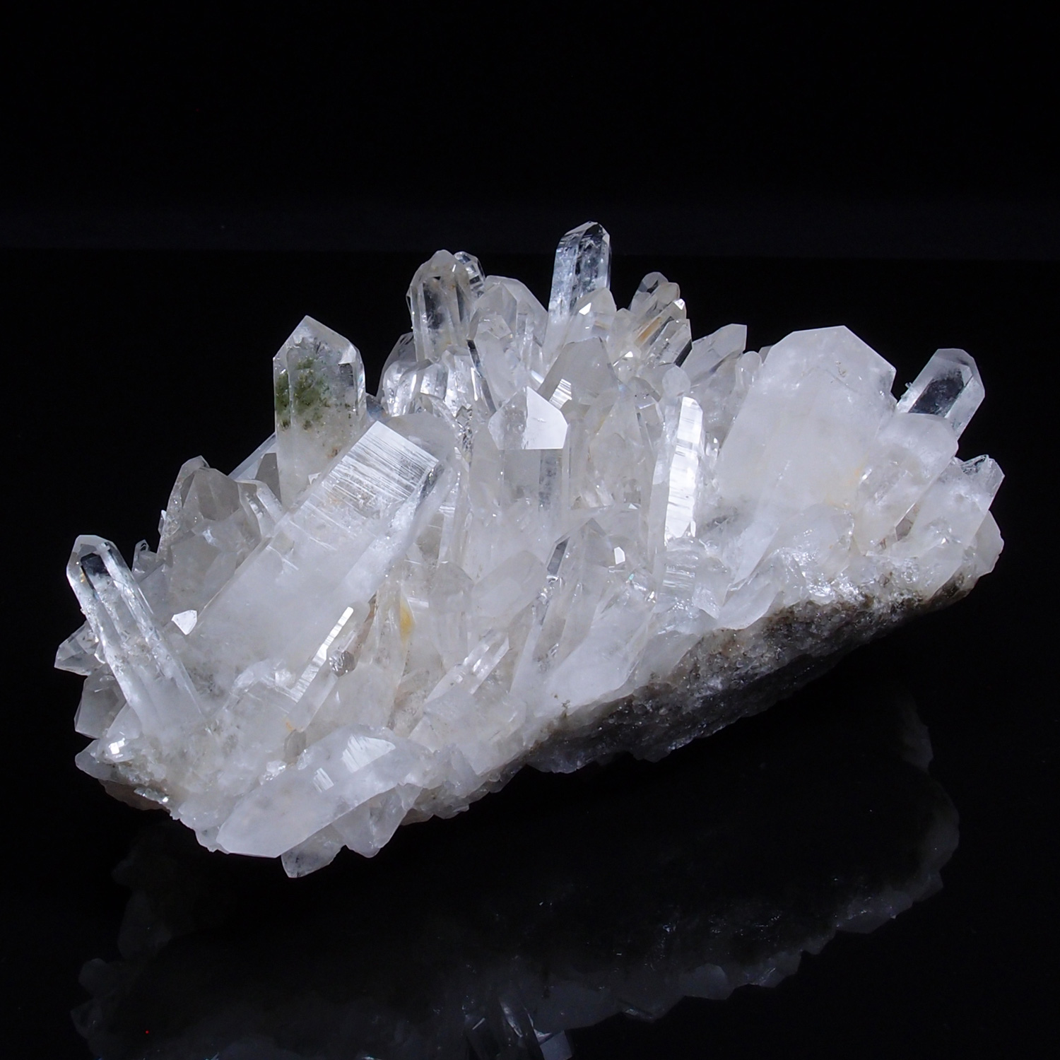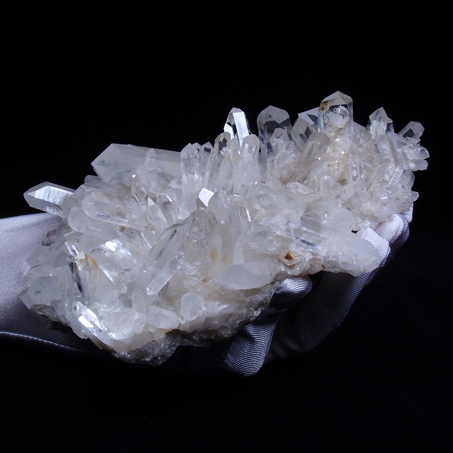 良質の原石は欠損も少なく、磨いたかのような艶やかで明るい透明結晶が林立します。