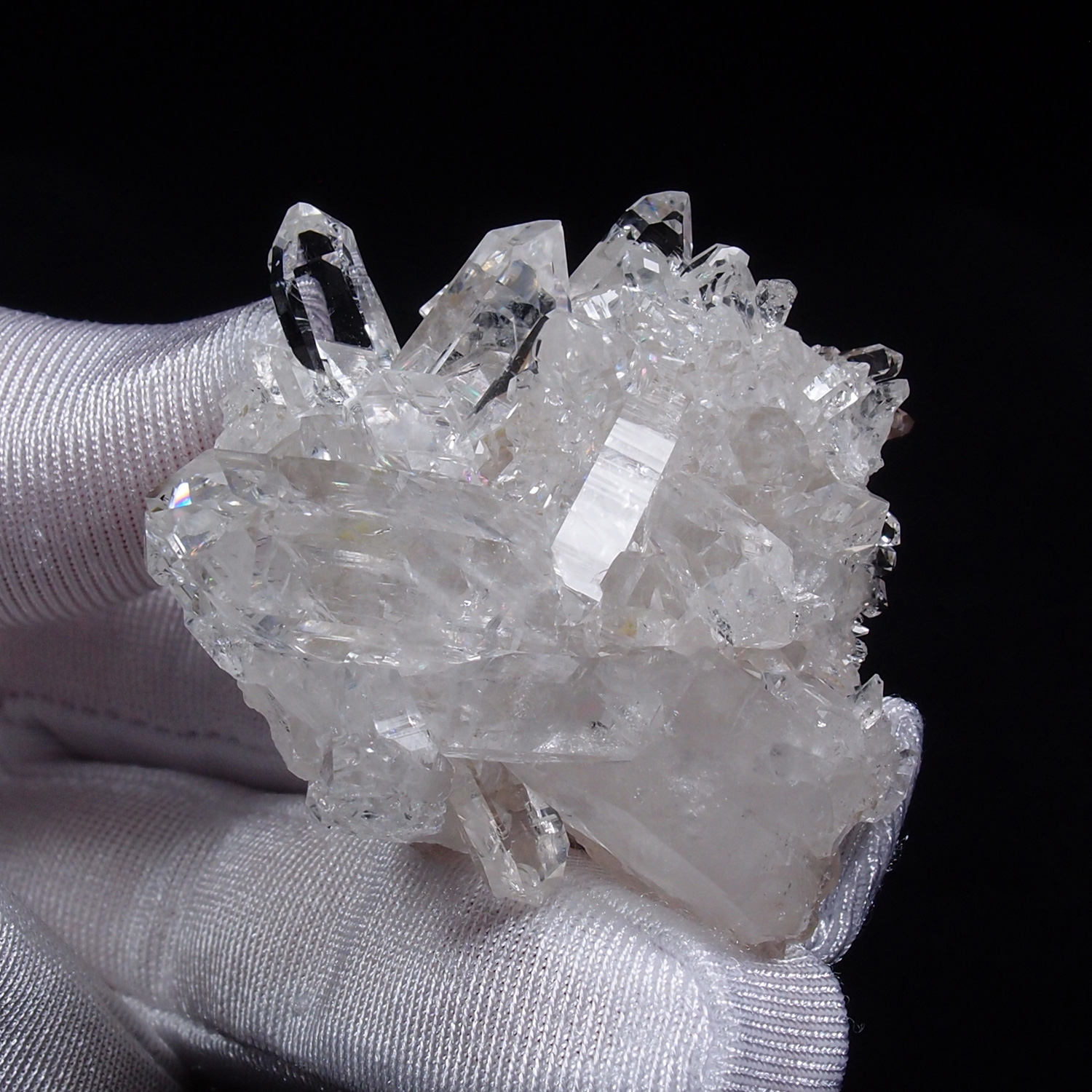 良質の原石は欠損も少なく、磨いたかのような艶やかで明るい透明結晶が林立します。