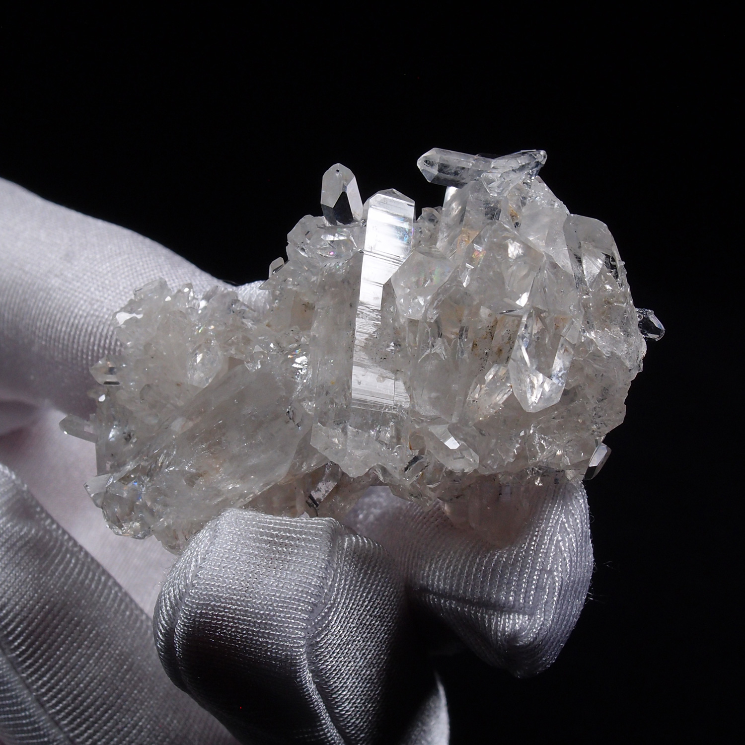 良質の原石は欠損も少なく、磨いたかのような艶やかで明るい透明結晶が林立します。
