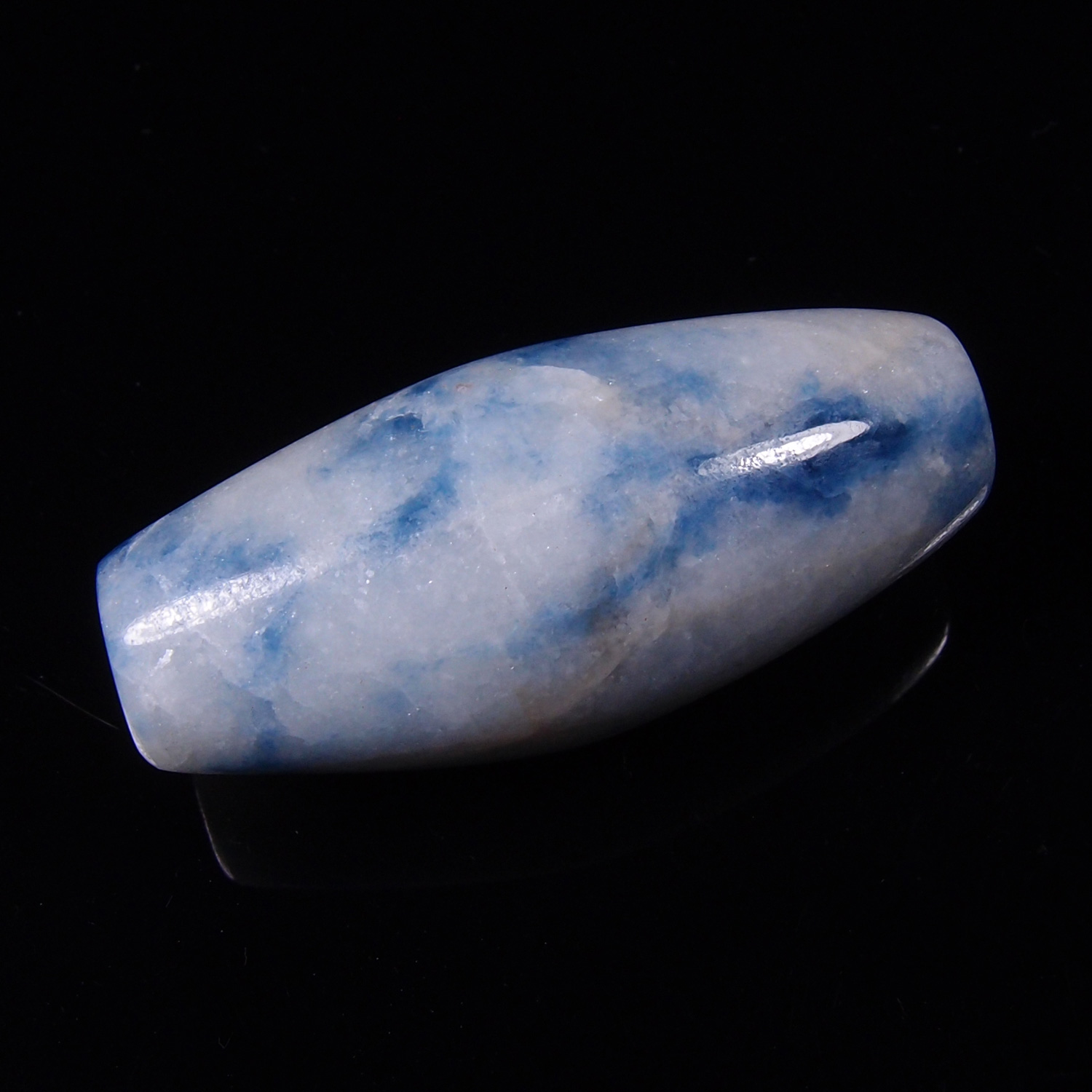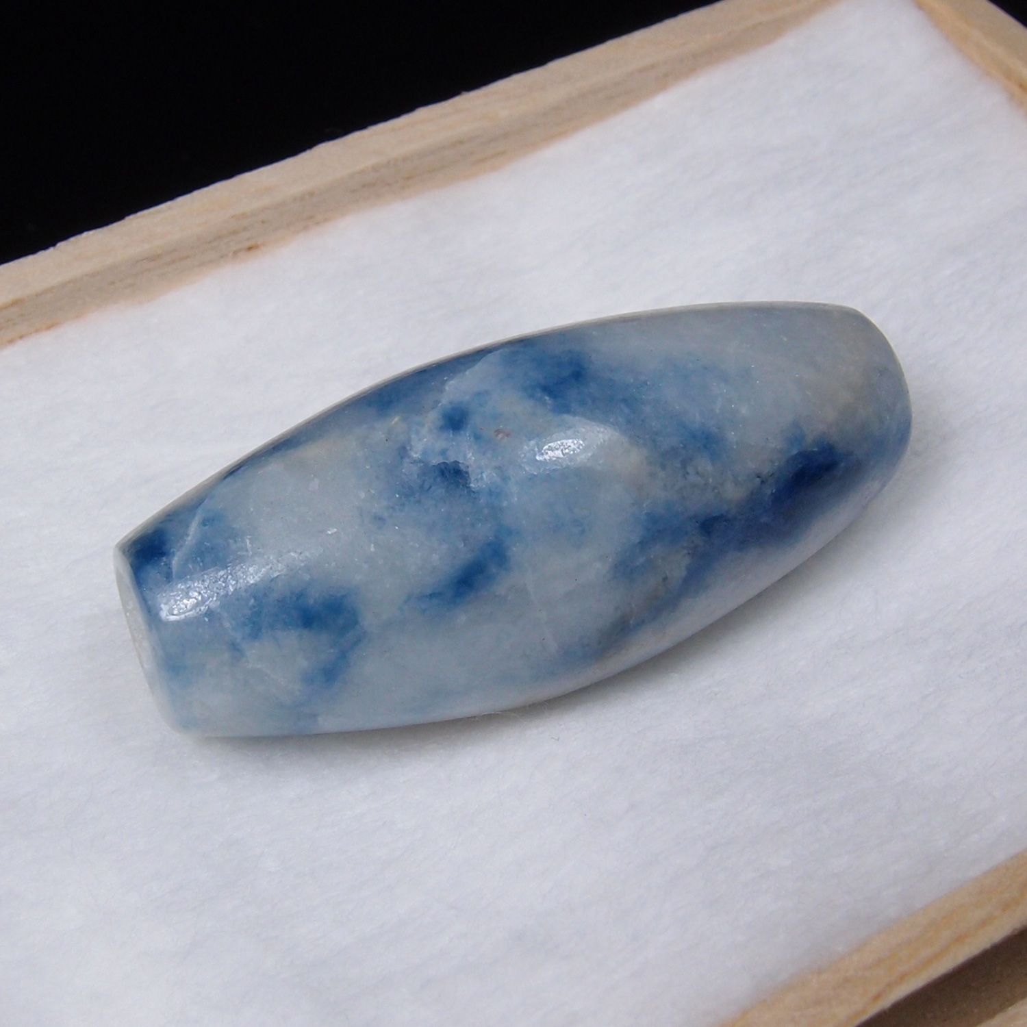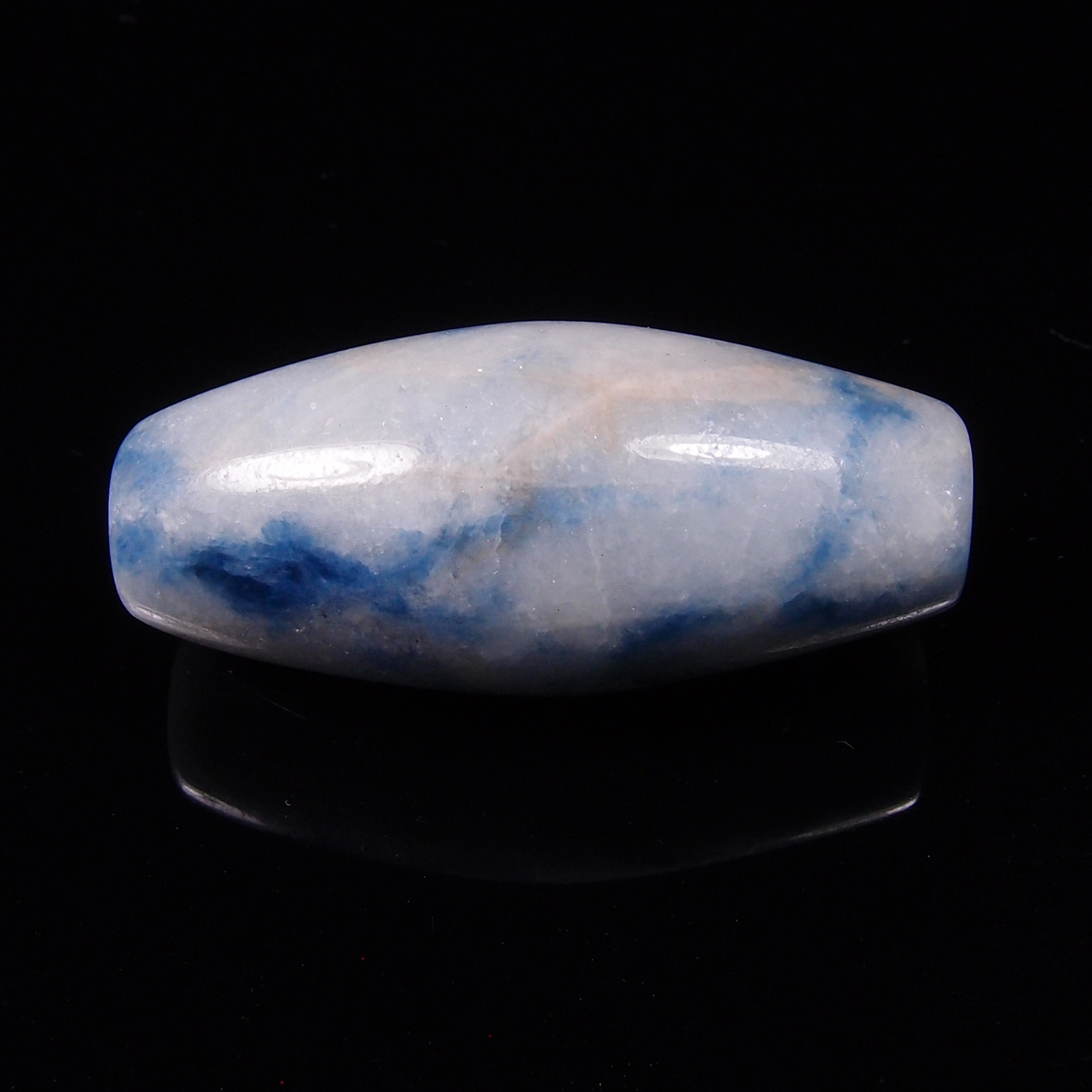 非常に稀少な入コン沢産青翡翠の管玉です。青色の濃淡が美しく、透明度もある、質の高い青翡翠です。