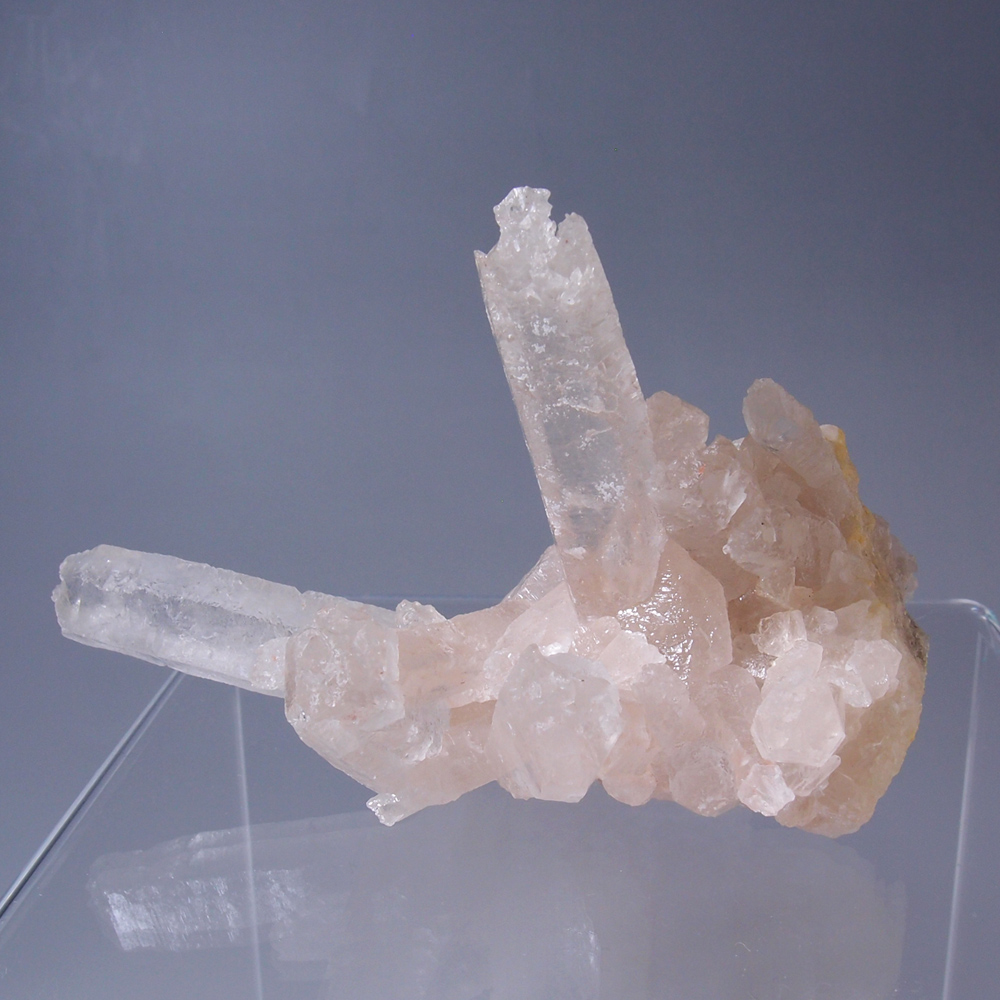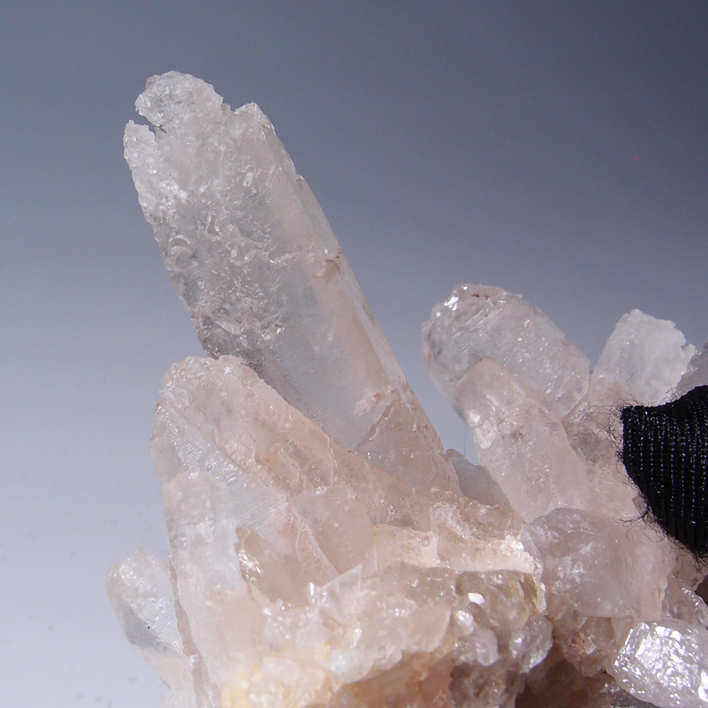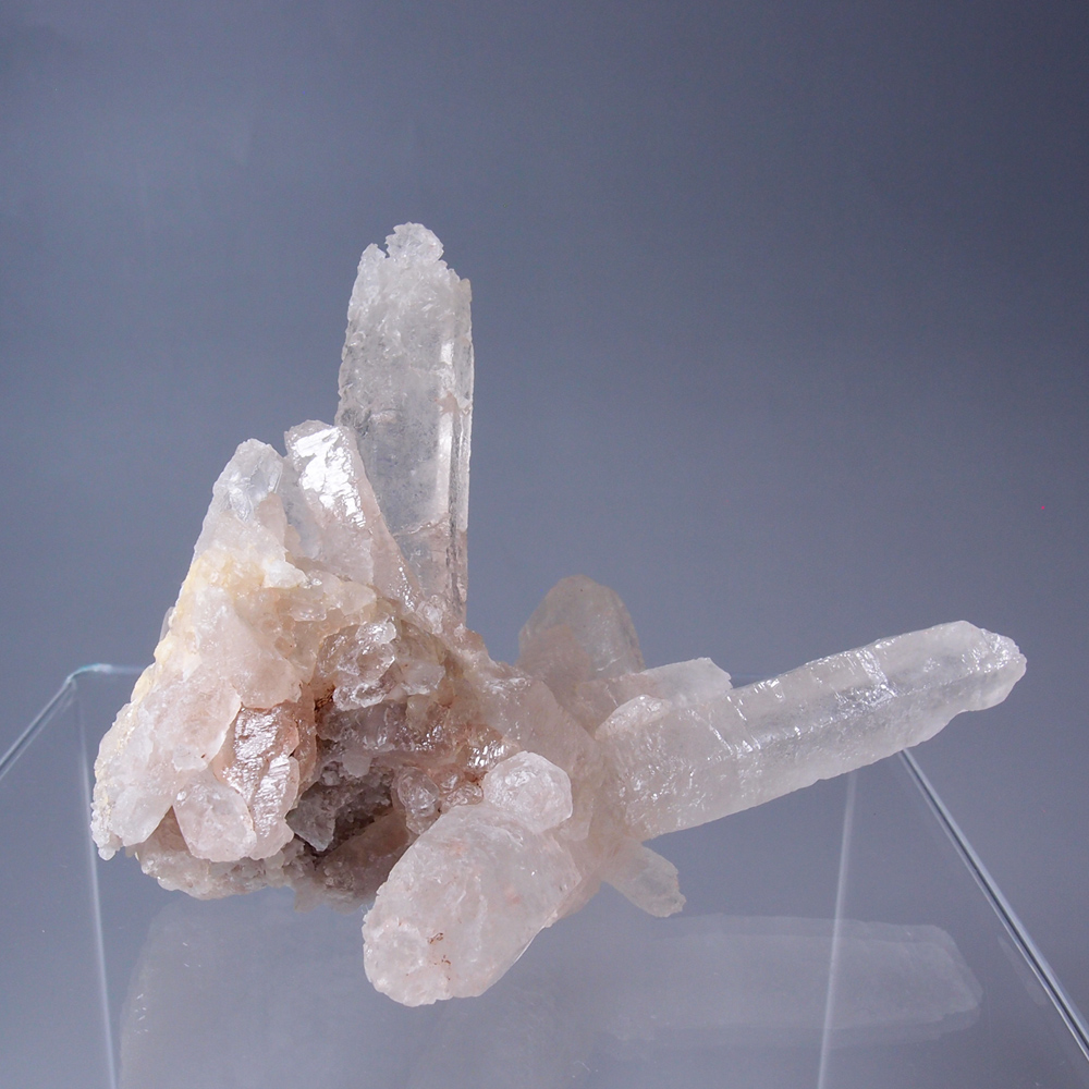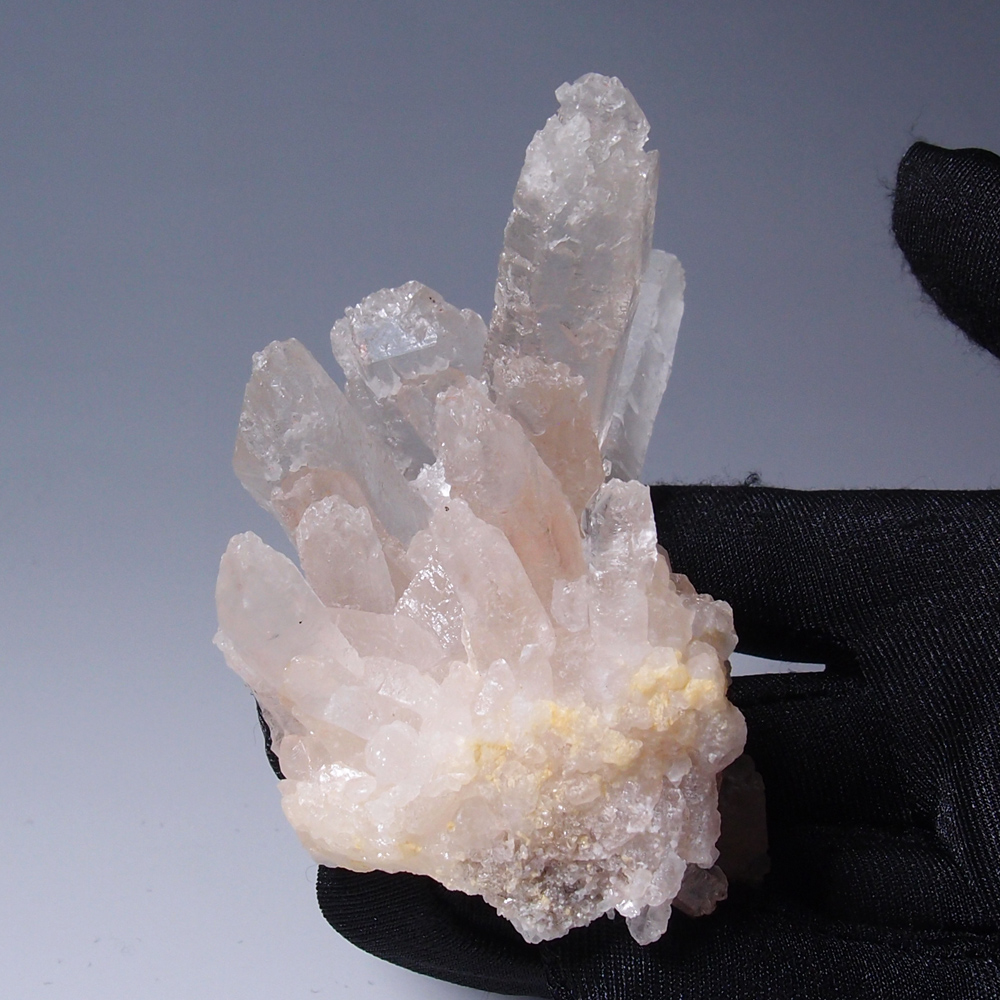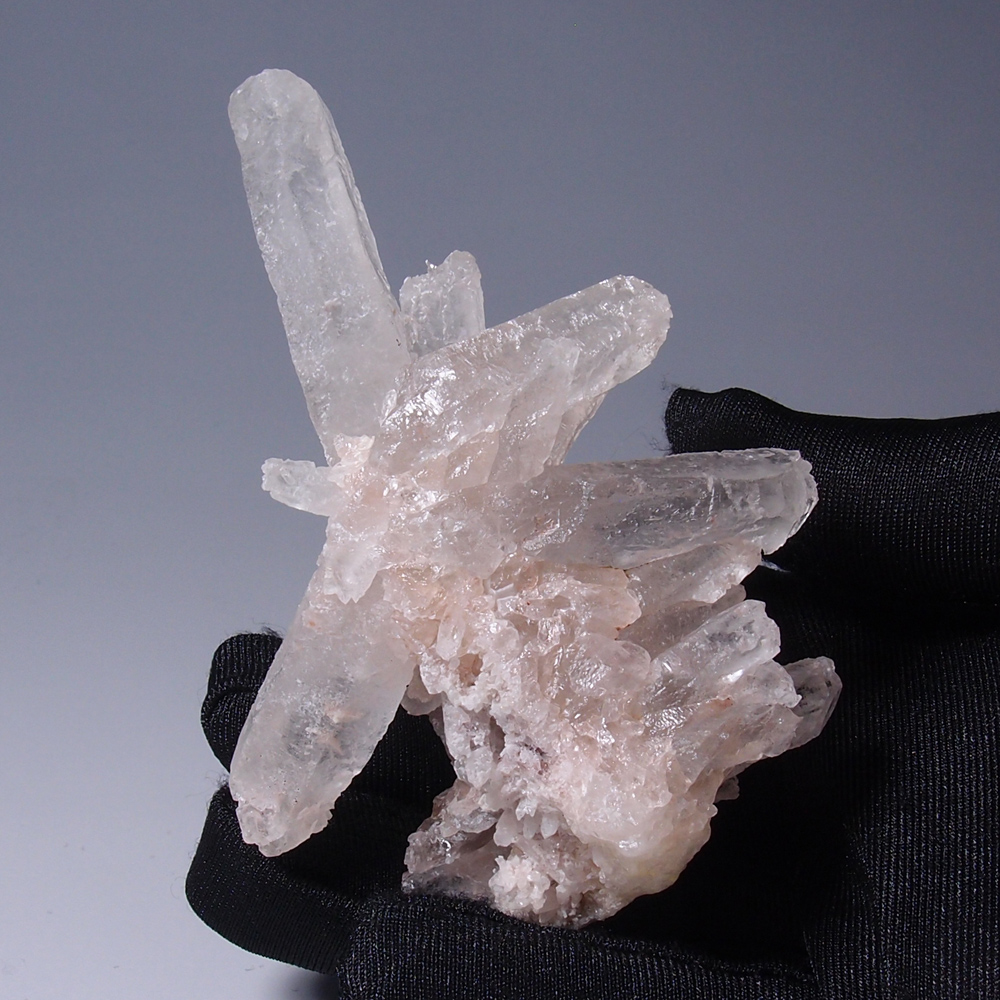 氷砂糖のような優しい雰囲気の水晶や、淡いピンク色を帯びたピンククリスタル、アイスクリスタルと同じように岩盤などの干渉を受けた独特の形、結晶が連なった連晶やカテドラル。中には、アイスクリスタル同様、C面やトライゴーニックを持った水晶も見られます。