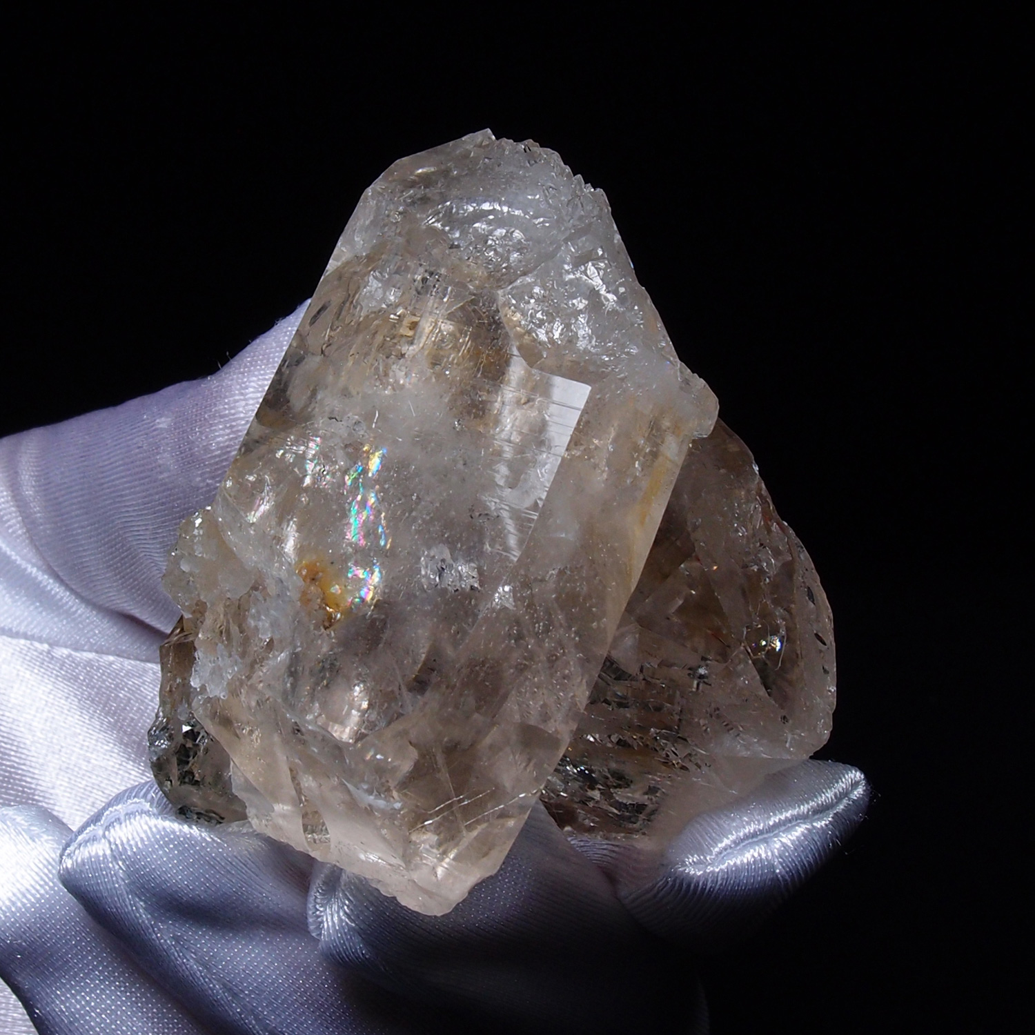 水晶の結晶形は、先端が両方にある双尖六角柱(ダブルターミネーテッド)や、長柱状の結晶が多いようです。
