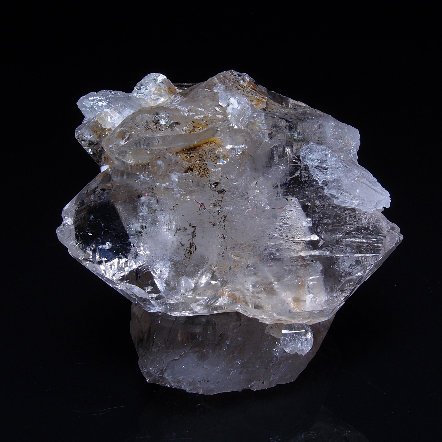 また、水晶の折れた部分や母岩から剥がれたところから、別の新しい水晶が成長している様子が、多くの水晶に見られます。これはセプター(松茸水晶)状であったり、先端が多頭状になっていたり、割れた面に新たに細かい結晶が密集していたり(セルフヒールドとも呼ばれます)といった様子で確認できます。 水晶の成長過程で激しい地殻変動があったのかもしれません。