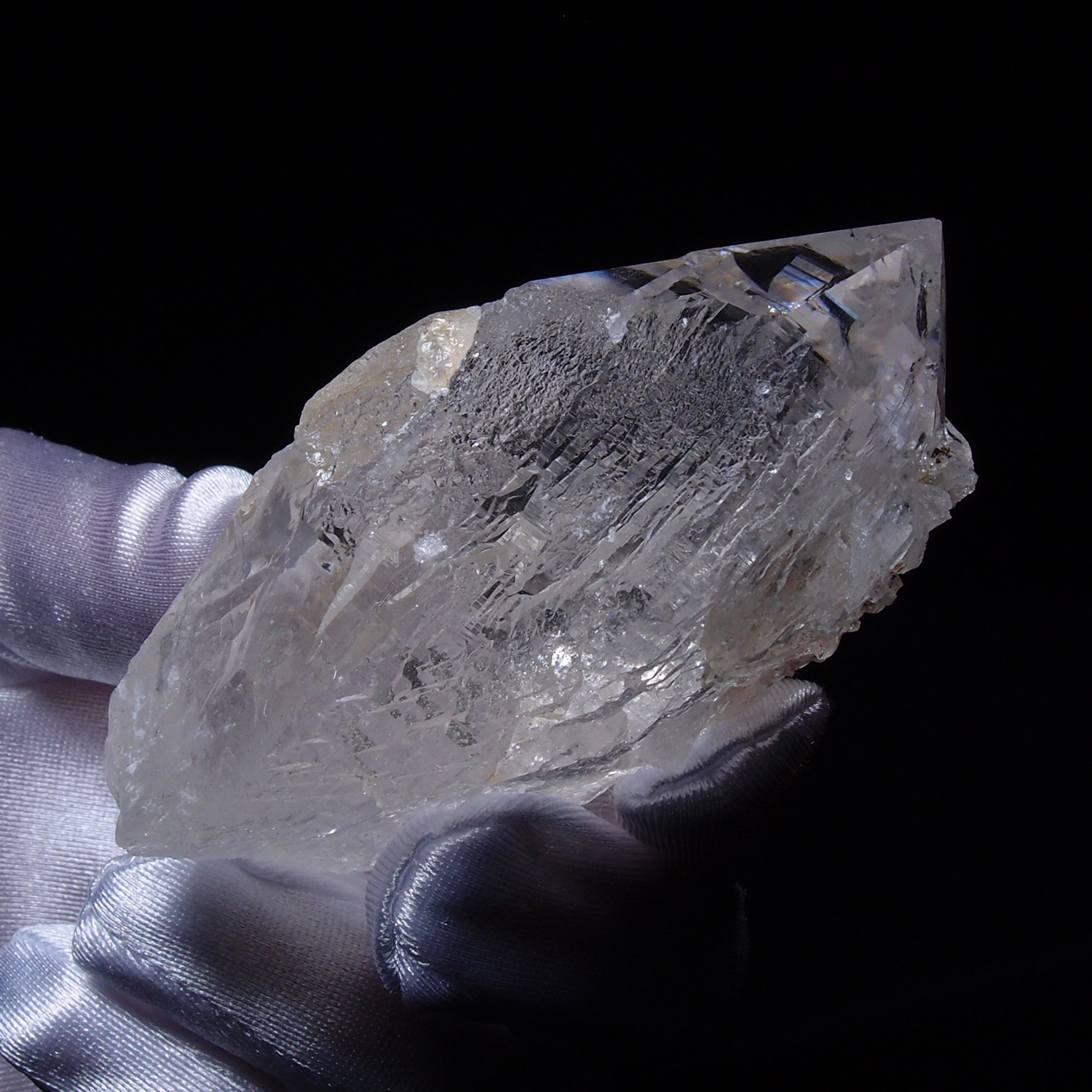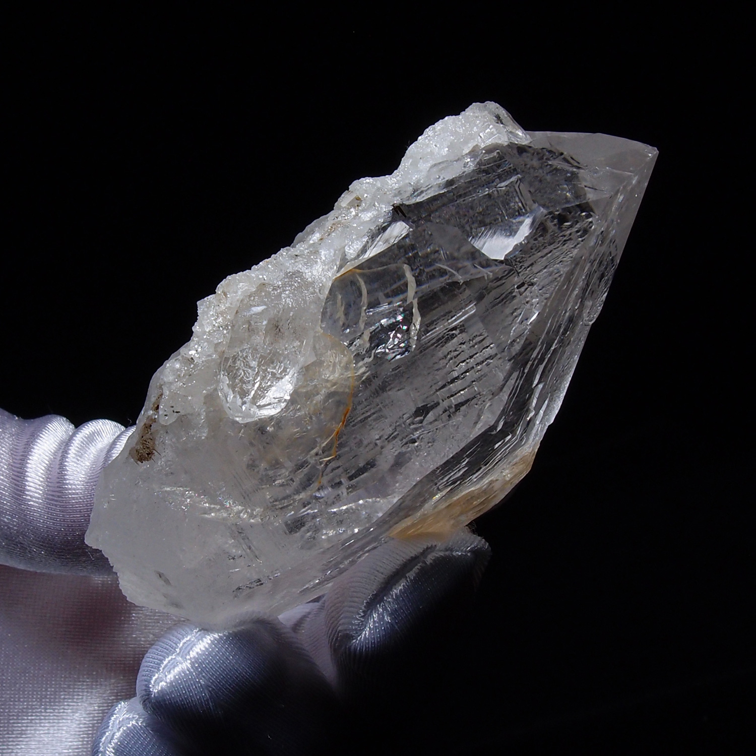 水晶の結晶形は、先端が両方にある双尖六角柱(ダブルターミネーテッド)や、長柱状の結晶が多いようです。