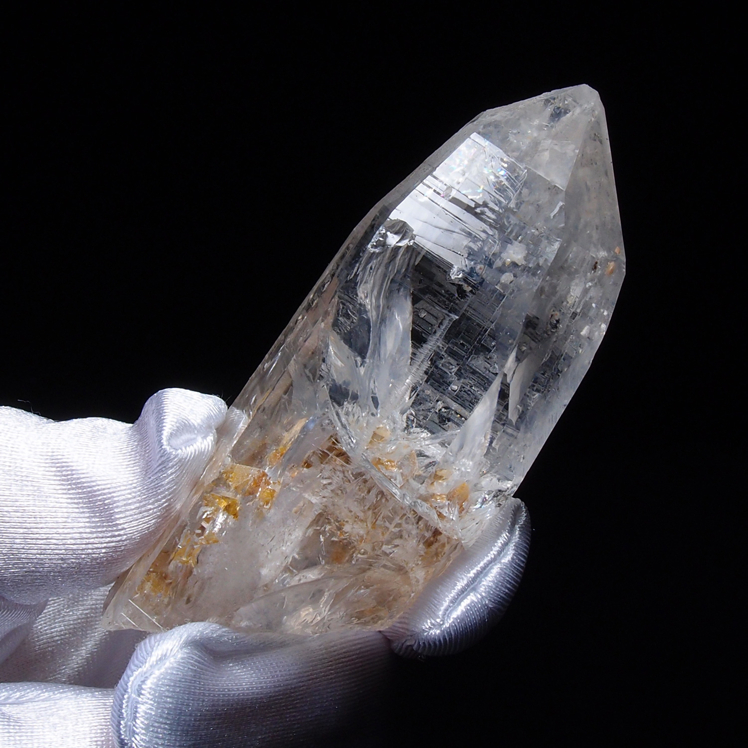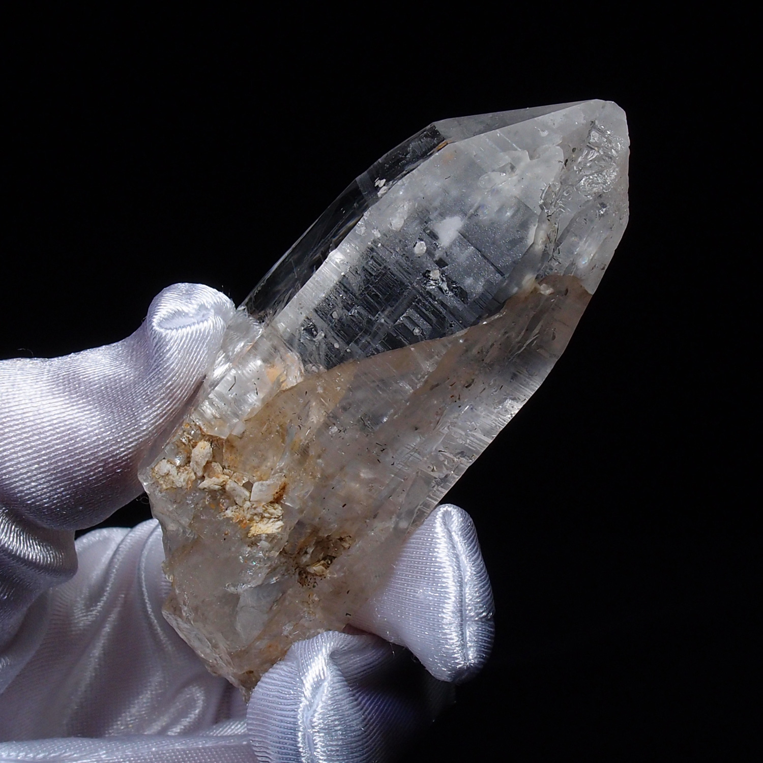 水晶の結晶形は、先端が両方にある双尖六角柱(ダブルターミネーテッド)や、長柱状の結晶が多いようです。