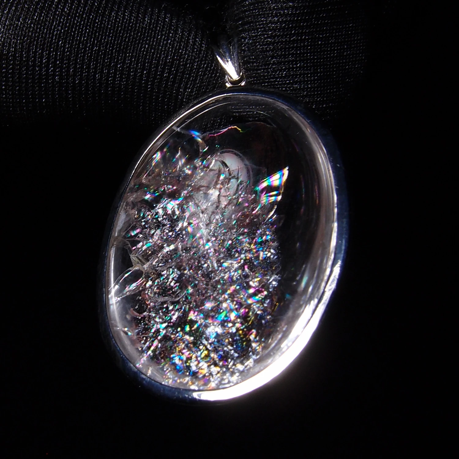 レインボー(虹)は水晶の内部のクラックなどに光が反射して七色に輝いて見える現象です。同じようなクラックがあっても虹が出ない石もありますから、美しい虹が見える水晶は、特別なパワーを感じさせます。
